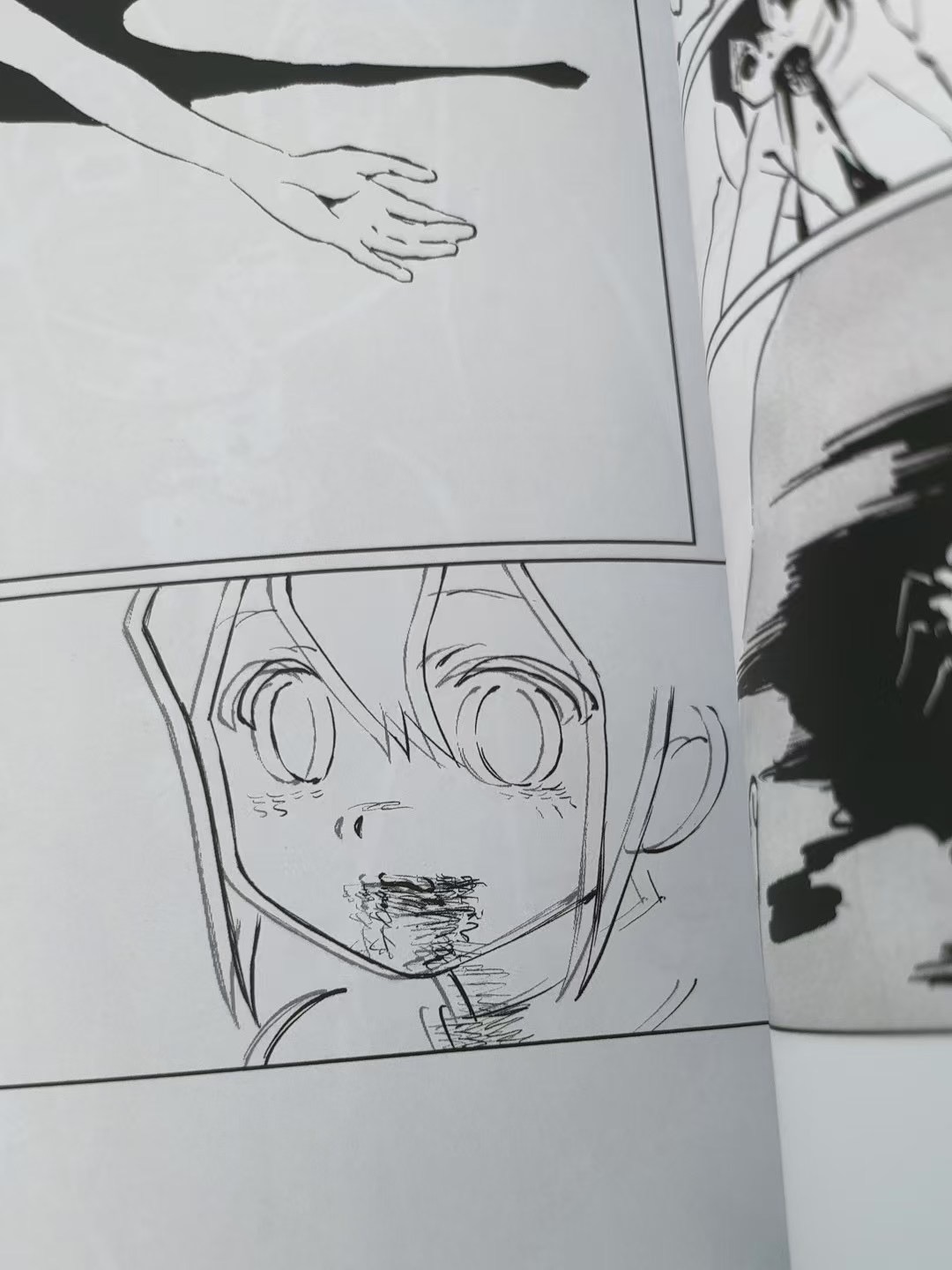 因为收到书的时候并没什么看书的力气,所以为了找到状态特地准备了一番,漫画的内容很暧昧,充满了内敛的情绪和哲学意向,里面有一个人外角色,说的台词要参考异形字母表来自己确认内容,这部分设计很有趣,反复看了好几遍。但是比起揣摩aa酱画这本漫画的意图,或是角色在想什么,我更多像是在美术馆里看画一样去辨认自己产生了什么情绪。有时候,艺术作品所展现的通感和信息,还有读者接收信息时产生的误差,也是艺术影响的一部分吧。所以我只是自己看了,把感受写下来,并没有和aa酱确认自己的感想正确与否,她收到感想也很开心。
